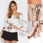 The blouse is featuring elastic slash neck, off the shoulder, long flare sleeve and floral printed.;100% Polyester, soft and comfortable.;Long Flare Sleeve, elastic slash neck, easy to wear.;Package Contents:1*Blouse (No accessories included).;As different computers display colors differently, the color of the actual item may vary slightly from the above images, thanks for your understanding.;It is our Asian size. You should choose one size larger. Please allow 1-2cm differs due to manual measurement, thanks..